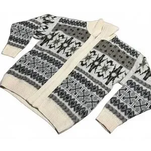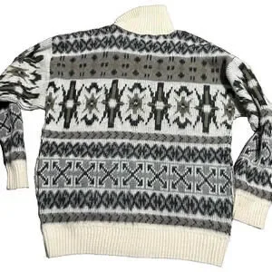 London Fog L XL Vintage Full Zip Ski Sweater Nordic Aztec Snowflake 70s 80s
