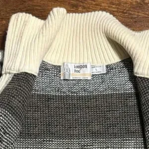 The London Fog Vintage Full Zip Ski Sweater in size L features a geometric Aztec snowflake pattern, perfect for skiing and winter activities. Made of acrylic material with a tight-knit fabric type, this sweater has a mock neck and long sleeves for added warmth. The regular fit and full zip style make it versatile for casual occasions and travel, embodying the 80s theme with its colorful multicolor design. Machine washable and with vintage appeal, this sweater is a stylish and functional addition to any man's wardrobe.