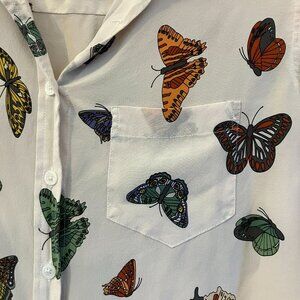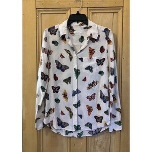 Equipment Femme Womens Essential Butterfly 100% Silk Shirt Small White SP EXC.