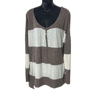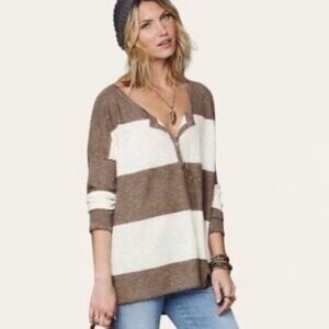 Free people beach women’s large Henley gold rush striped linen blend tunic