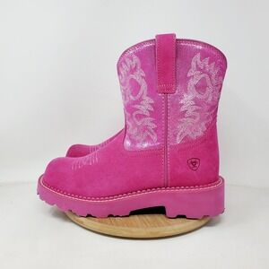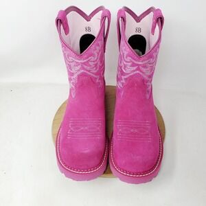 Ariat Fatbaby Boots Womens 8 Pink Suede Metallic Cowboy Western Shoes