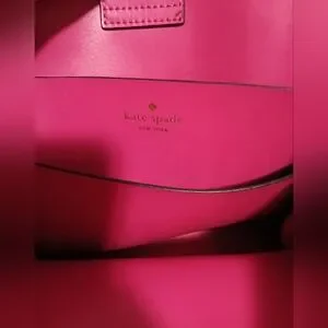 Super cute, black and pink Kate Spade purse. This bag can be held with the shorter handles or the long, crossbow strap that is adjustable. Gold hardware and several pockets inside. Minor signs of wear pictured, but otherwise great condition!
