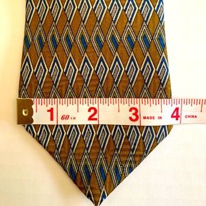 UMBERTO BOSSI. 100% Silk necktie. Handmade.Diamond shapes. Gold/Blue/Whi…