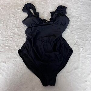 CUPSHE Womens Ruffle Lace Up One Piece Swimsuit Black Size Medium NWT