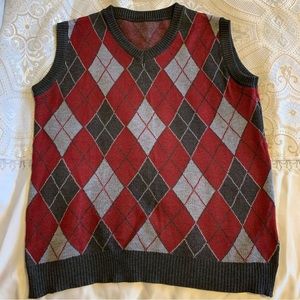 Argyle print sleeveless sweater. V-neck. Unisex. Tags for size/material …