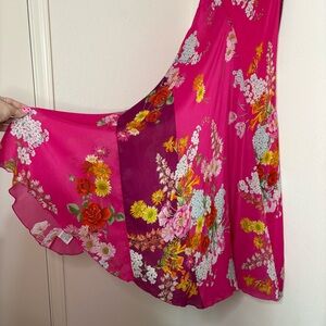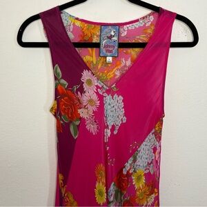 Johnny Was Golden Bouquet Vibrant Pink Floral Bias Maxi Dress Size Small