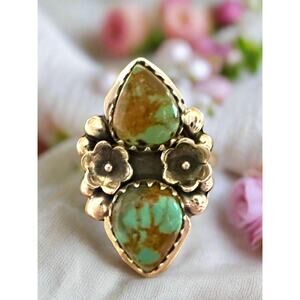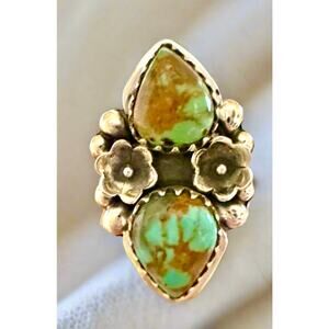 Royston Two Stone Teardrop Floral Sterling Ring Size 7, Solid back.