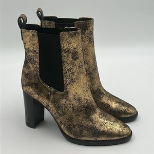 Lauren Ralph Lauren Mylah Gold Distressed Metallic Leather Ankle Boots | Size 7B New with Box