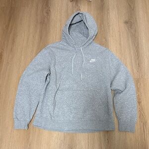 Classic Nike gray hoodie. Features iconic logo on chest. Ideal for everyday comfort. In excellent condition