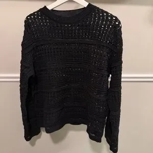 M&S Black Crochet Knit Sweater Open Knit Pullover US S