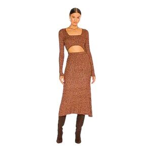AFRM Womens Sweater Dress Maxi Cut Out Long Sleeves Rust Brown NWOT