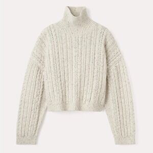 Toteme Cropped Cable Knit Turtleneck Sweater Off White Cream Chunky Quiet Luxury
