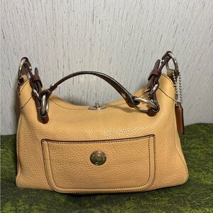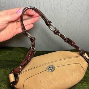 Vintage coach Chelsea turn lock in a tan and brown color way. In great preloved shape. Approximately 4 inches across please do Examine photos closely. I will include off brand dust cover