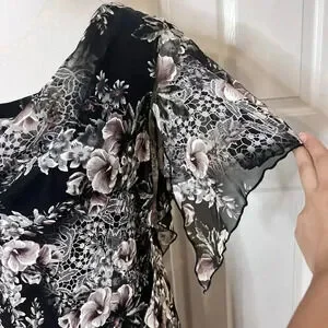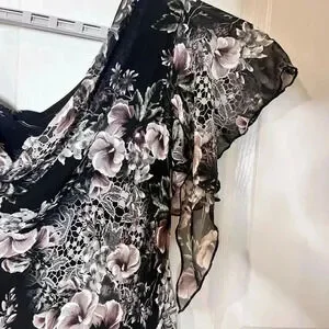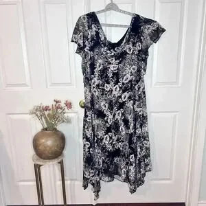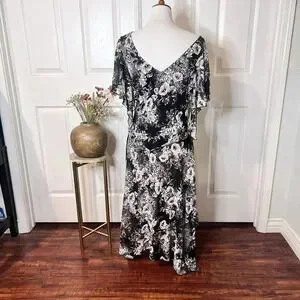 VTG Signature Robbie Bee Womens Floral Asymmetrical Midi Dress 14W Fairy Goth