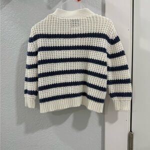 Stay cozy and stylish with this classic navy and white striped turtleneck sweater. Ideal for any casual occasion, it combines comfort with a timeless look.