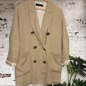 Zara Women's Linen Double Breast slouchy Boyfriend Blazer Natural Tan Size M