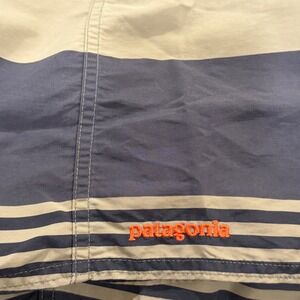 Patagonia Men's 30 Board Shorts Striped Tan Black Swim Trunks Drawstring