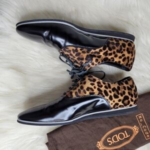 Tod's Leather Calf Hair Leopard Oxford Shoes