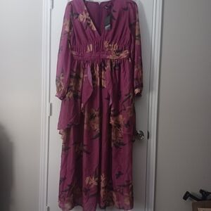 Sheilay Floral Midi Dress W/butterfly Sz XL.