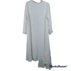 Solika White Asymmetrical Dahlia Dress Lagenlook Minimalist Size L