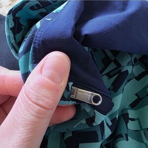 Great pair of athletic shorts! Has zippered pockets! No size tag but is a small. In good condition, has a couple loose threads at the bottom