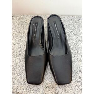 French Connection Aimee Black Heeled Mules | Block Heel Slip-On Dressy Shoe 6.5
