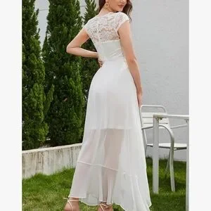 This elegant white lace wedding dress is perfect for any special occasion. Featuring a delicate lace bodice and a flowing skirt, it offers both style and comfort. Ideal for weddings, parties, or formal events.