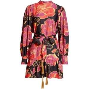 Farm Rio Shiny Chita Mini Dress Black Combo S