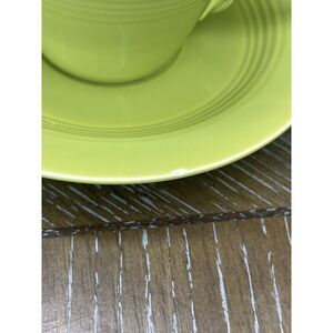 Homer Laughlin China - Harlequin 4 Cups 3 Saucers - Chartreuse Yellow Blue Rose
