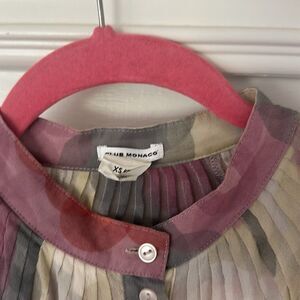 Beautiful geometrical balloon sleeve button up blouse by club Monaco, very chic and contemporary