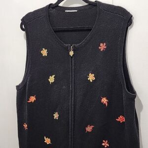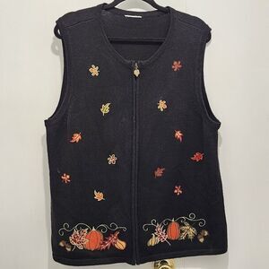 Breckenridge Women's Fall Leaves & Pumpkins Zip Up Vest Size XL