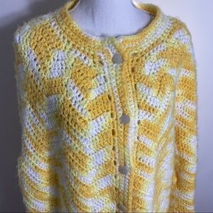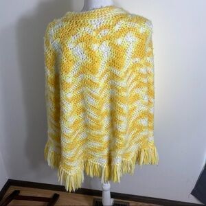Vintage Hand Knit Yarn Poncho Button Down Fringe Women’s Sweater