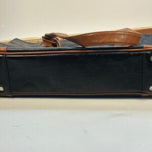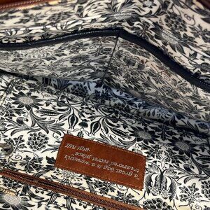 Gigi Hill Women's Black Brown Leather Tote Bag Floral Lining Shoulder Purse