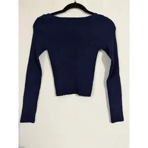 RSQ Navy Blue Ribbed Square Neck Long Sleeve Cropped Sweater Small