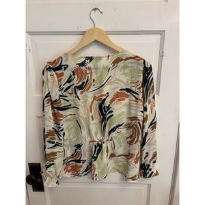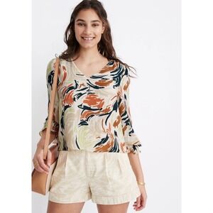 Madewell Women's Cream V-Neck Ruffle Cuff Top Brush Patterns Size Small $78