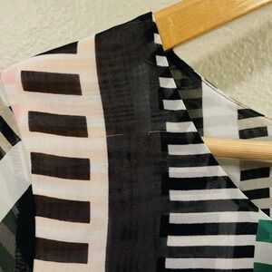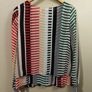 Worthington Long Sleeve Blouse Semi- Sheer Multi Color Geometric Artsy Boho Sz M