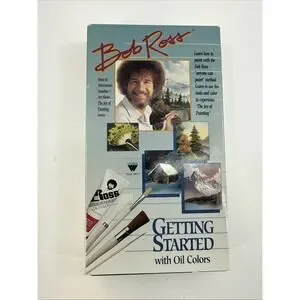Bob Ross "Getting Started With Oil Colors" is a VHS tape from 1998 featuring painting instruction by the renowned artist Bob Ross. This TV show falls under the genre of TV shows and movies, and it is in English with NTSC signal standard. The video showcases Bob Ross's expertise in oil colors, making it a valuable resource for beginners and experienced artists looking to enhance their skills in this medium.