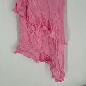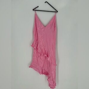 H&M Satin Ruffled Asymmetrical Flounced Romantic Feminine V Neck Slip Dress Pink