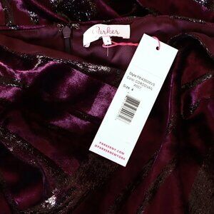 Parker Selma Velvet Metallic Burgundy Asymmetric Midi Slip Dress New NWT 4 8