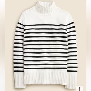J.CREW Cotton Turtleneck Sweater in Stripe Ivory White & Black Oversized Size XS NEW