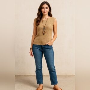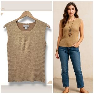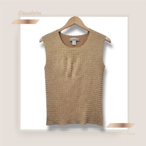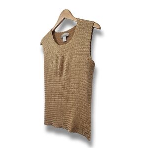 🌿Dressbarn Women's Large Gold Crinkle Sleeveless Top-Fab!!! 🌞