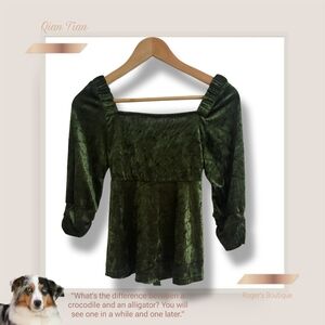 🌿Qian Tian Velvet Forest Green Tie Back Top est XS/SM Women's -Cute!