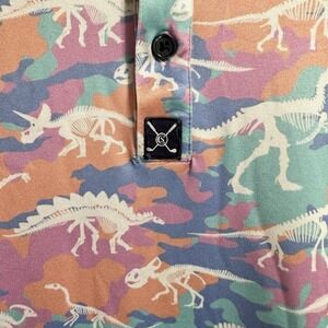 Con.struct Performance Dinosaur All Over Print Golf Polo Shirt Mens Medium EUC