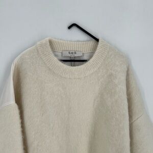 Sea New York Devana Mixed Media Alpaca Wool Blend Fuzzy Knit Combo Top In White