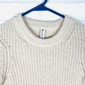 Keywords: Athleta sweater, wool blend sweater, ribbed knit sweater, crew neck sweater, tunic sweater, oatmeal sweater, women's sweater, xs sweater, Athleisure top, casual sweater, winter sweater, fall sweater, long sleeve sweater, workout sweater