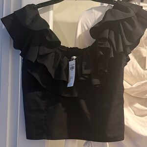 NWT Abercrombie Chic black top w/ruffled sleeves. Can be worn off or on the shoulder. Great spring break top!
