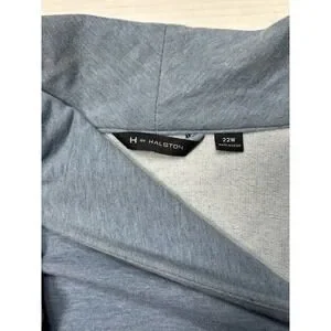 Keywords: Halston jacket, plus size moto blazer, asym zip knit jacket, stretch casual blazer, women's blue jacket, lightweight layering piece, modern zip front coat.
