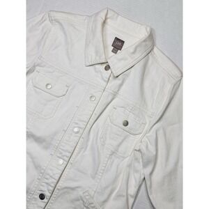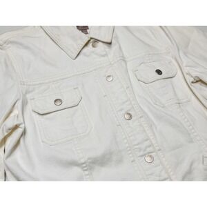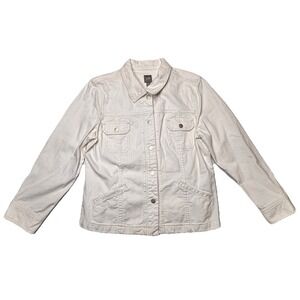 J.Jill Stretch Denim Jacket Womens Large Ivory Cream Button Front Pockets Casual