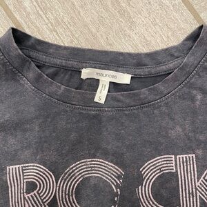 Trendy women’s t-shirt with 'Rock' and 'Music' graphic. Comfortable and stylish for everyday wear. Size small women’s.