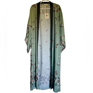 NWT Easel Sage Green Butterfly Maxi Kimono Size Small